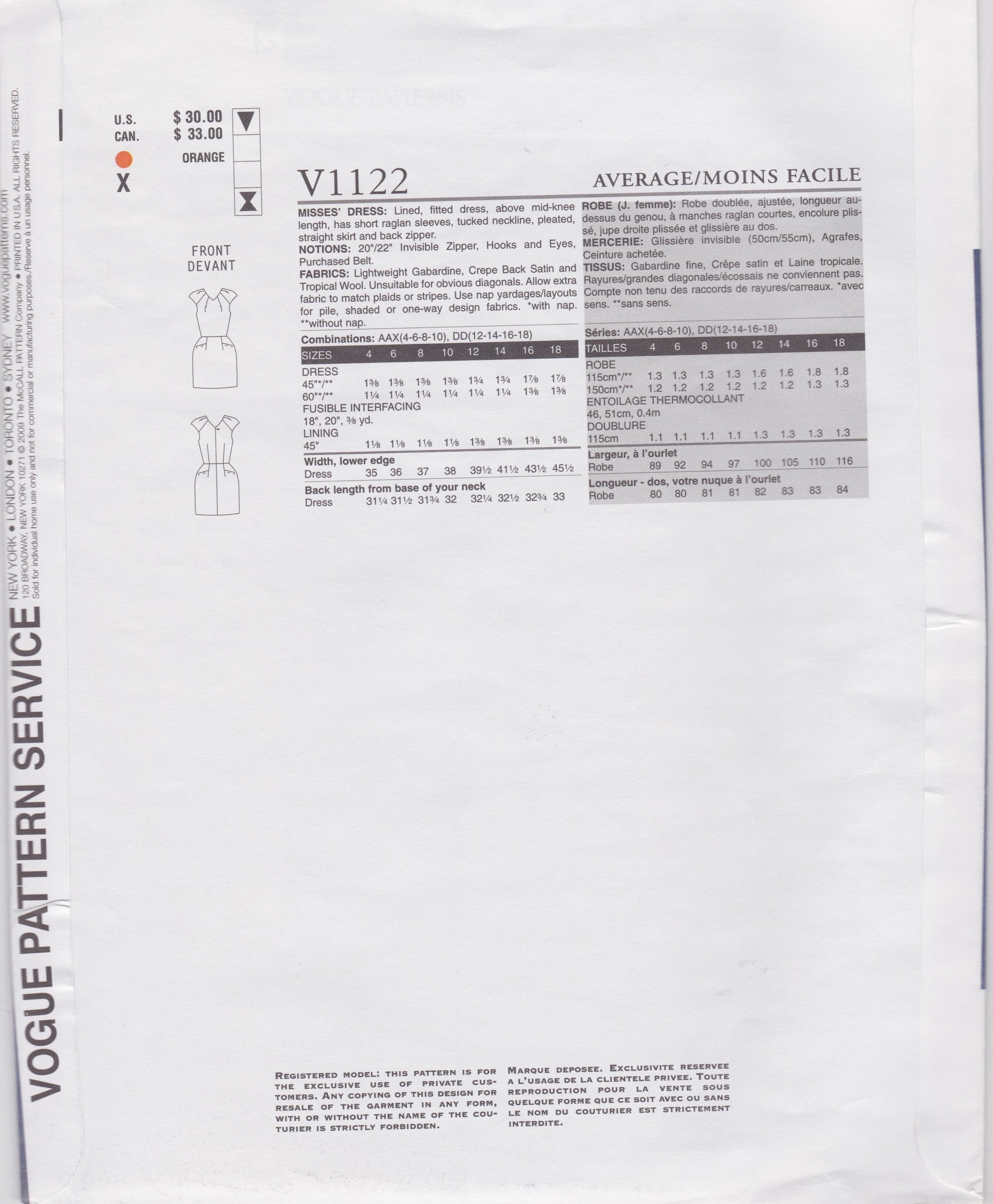 Vogue Patterns Misses Dress V1102 Ray Stitch